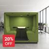 SNUG is a UK-made, fully enclosed meeting pod with recycled fabric, providing acoustic privacy for meetings, calls, and focus.